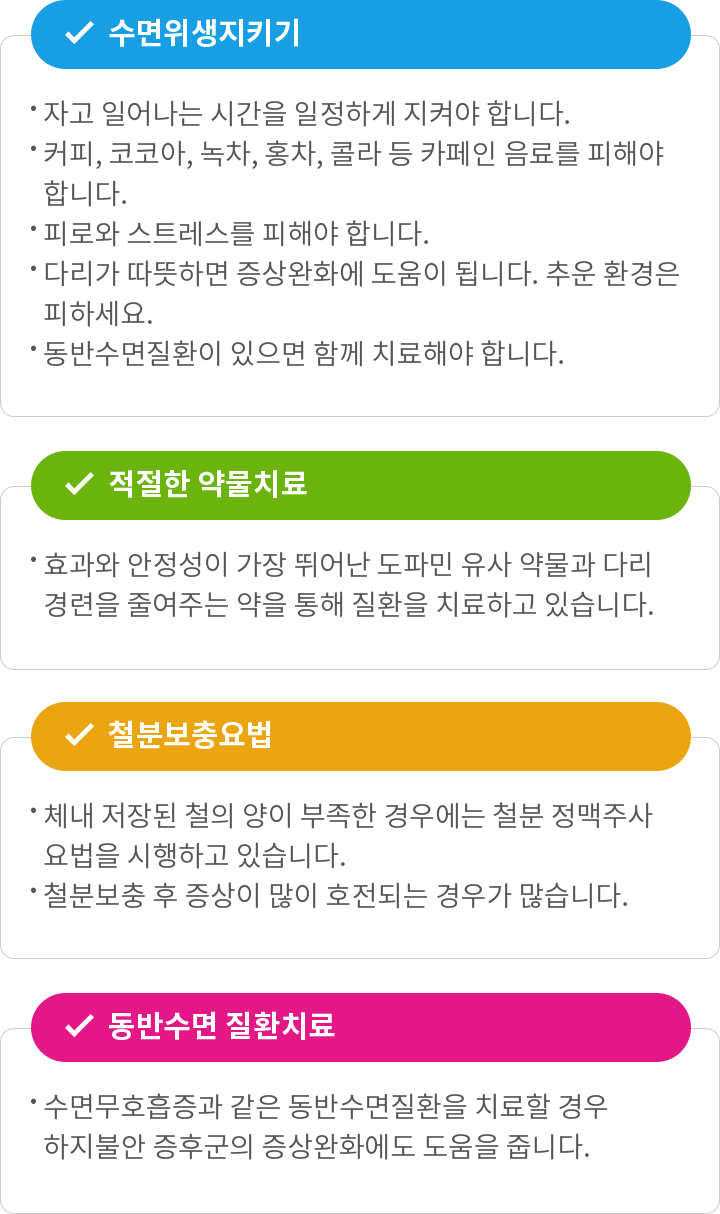다리에 불쾌한 느낌이나 통증으로 견디기 힘들다.